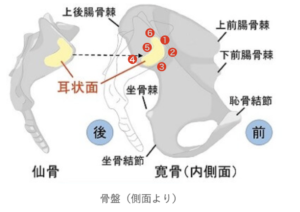 独特な形状の関節面「耳状面」です。
